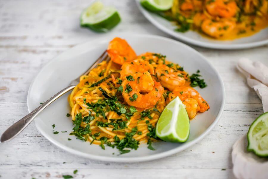 This makes a total of 4 servings of Keto Shrimp Curry Zucchini Skillet. Each serving comes out to be 464 calories, 31.9g fat, 10.4g net carbs, and 33.3g protein.